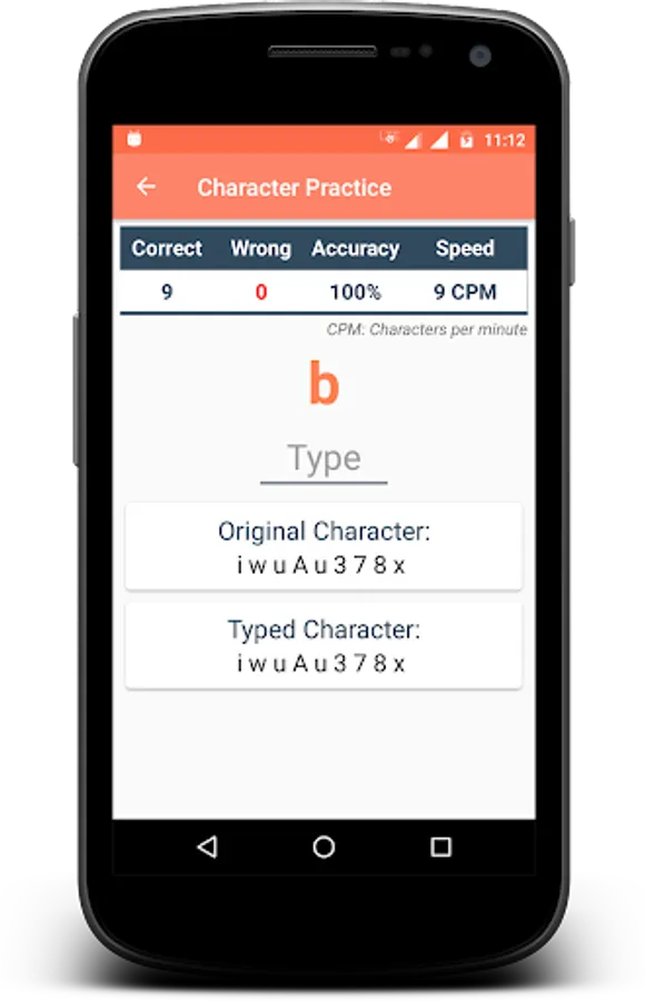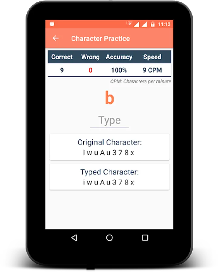 » Character Practice - You can use this practice to start learn to type. Get acquainted with the keypad and start speed typing. Get the statistics Characters Per Minute (CPM) of the typed character.