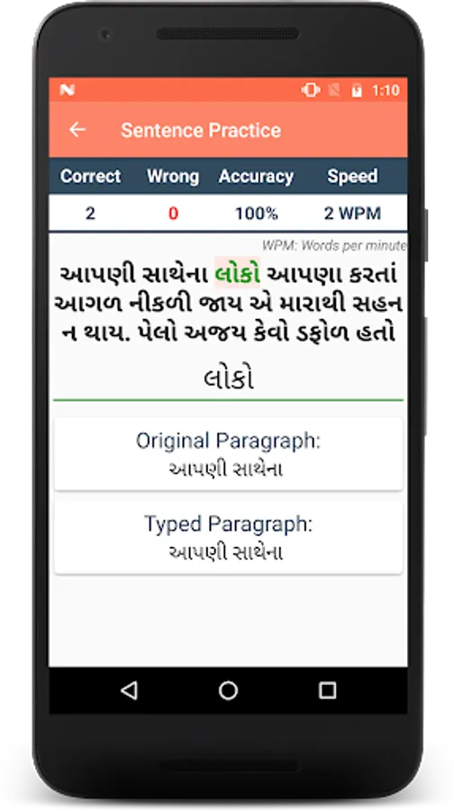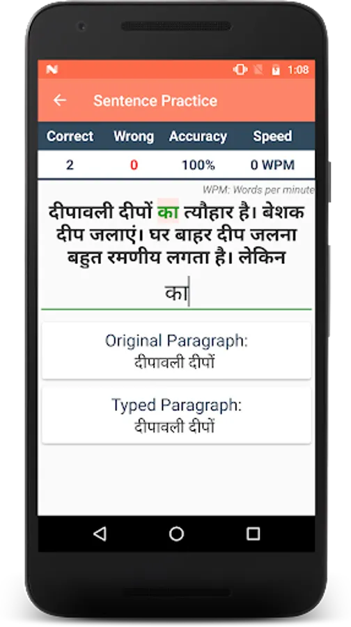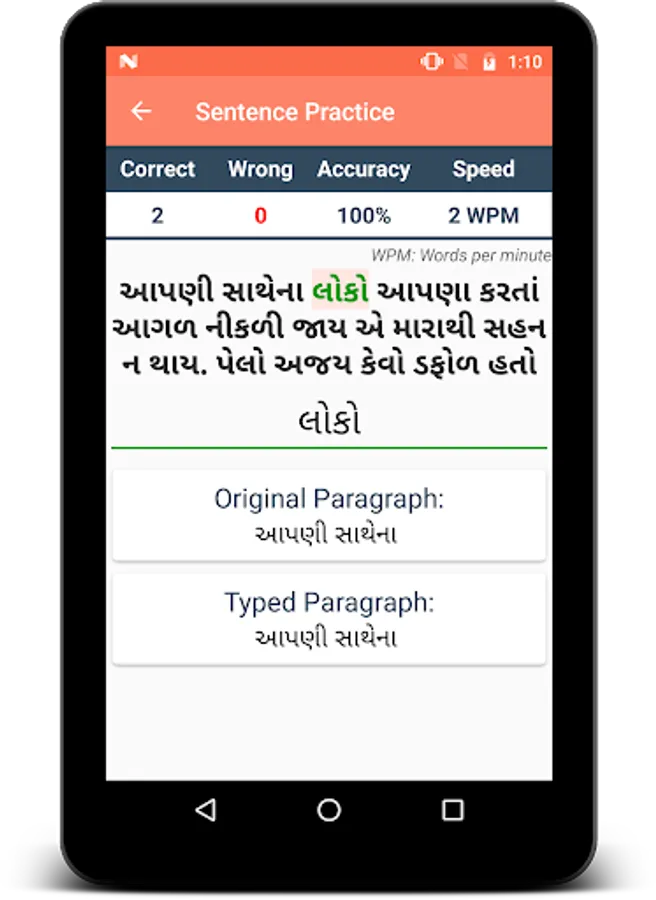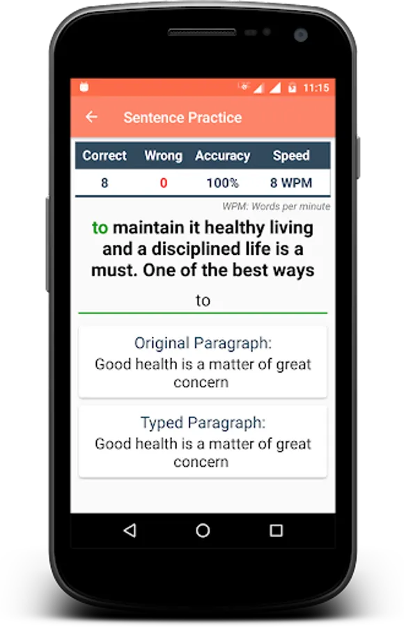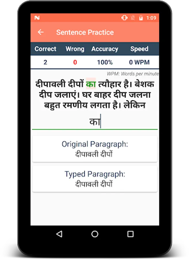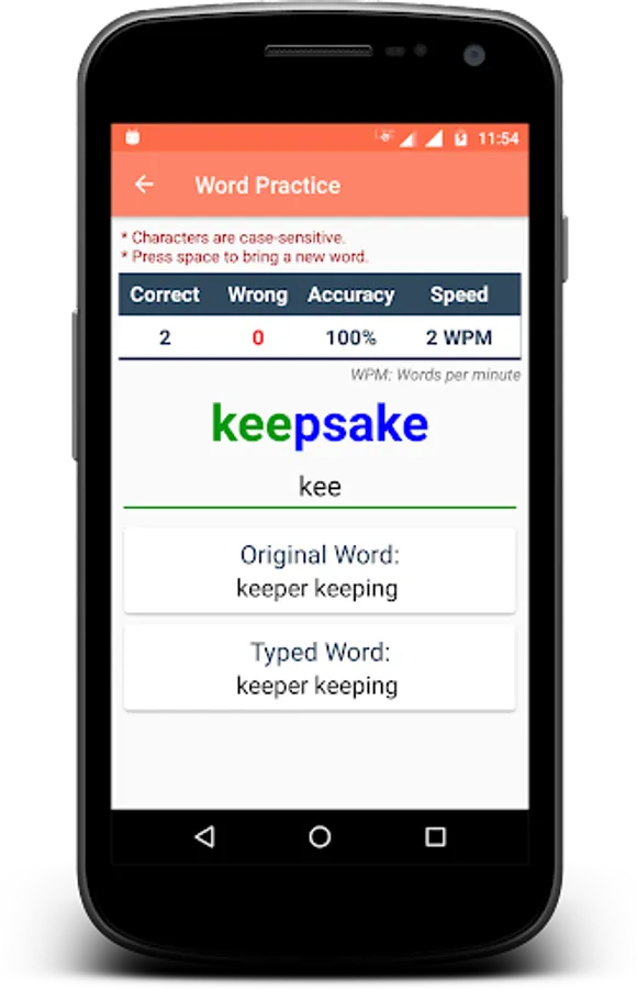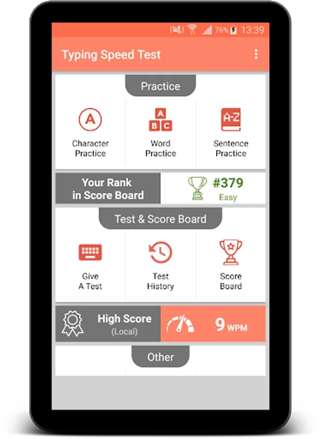 Typing Speed Test app is useful to test/measure the typing speed of a user. Learn typing and find how fast you can type. The app has a rich set of free typing lessons with options like hard/medium/easy typing to do online typing practice and learn to type. Letters are highlighted to help you focus on typing. You can become a typing master with the help of this app or can play typing games for fun. You need to add the language-specific keyboard to type in that language.