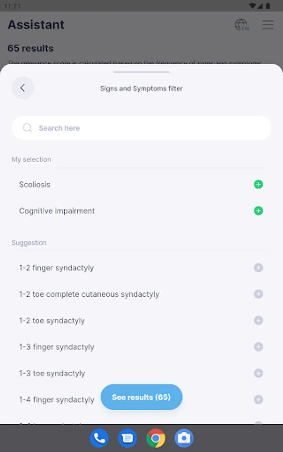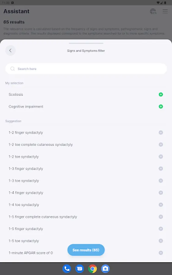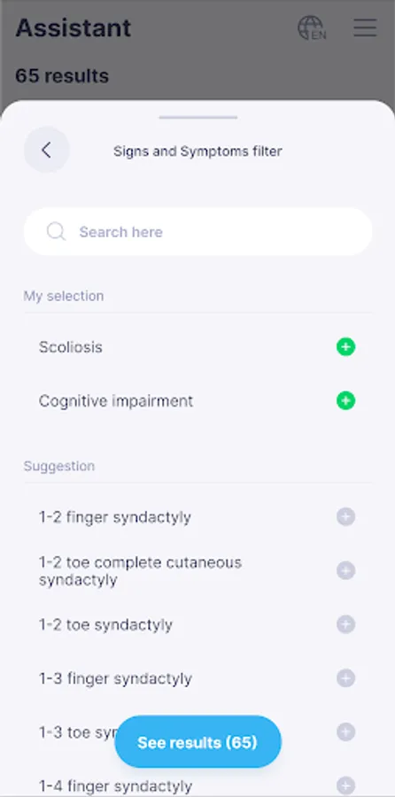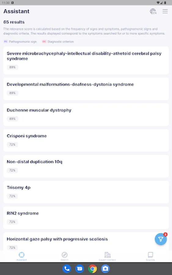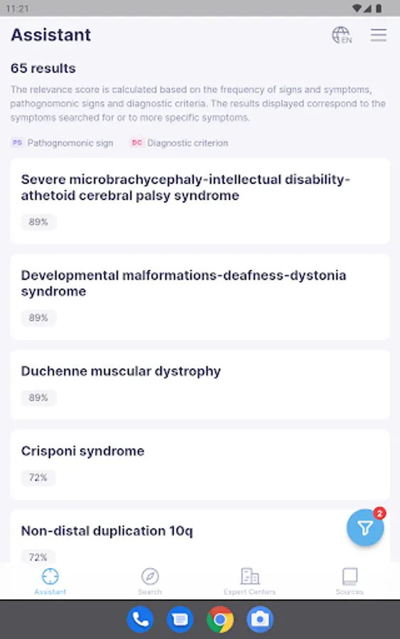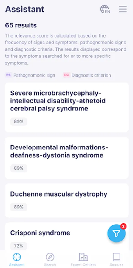 Assistant: use symptoms to find rare diseases and their expert centers.