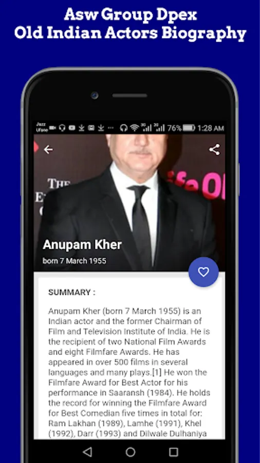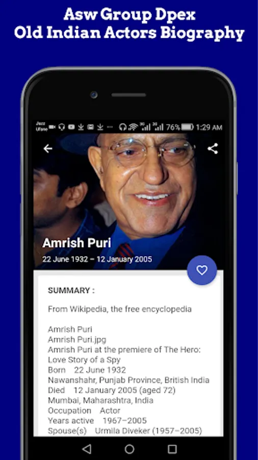 This app contains Biographies of some of the Old Indian Actors from around the globe. It mentions the details about the key events about their real and filmy life. Their life inspires us immensely about struggle .