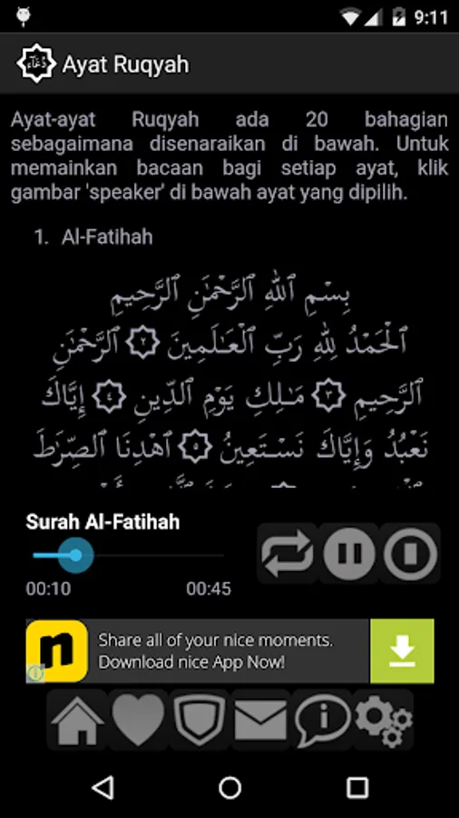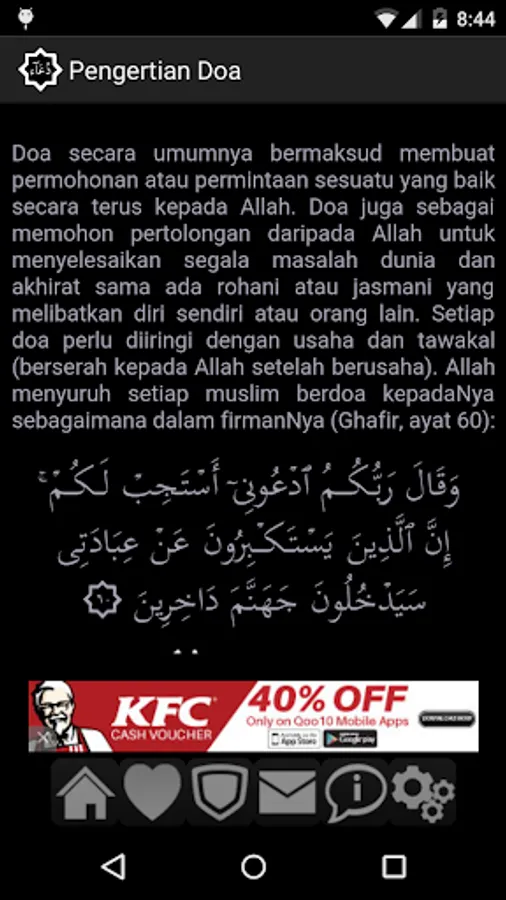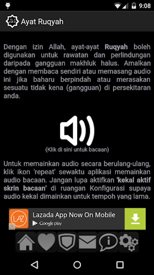 This application contains a collection of doa and zikir. Also included reading Ruqyah verses to negate the interference of spirit. It was hoped that this application will help the users in terms of practice and memorization.