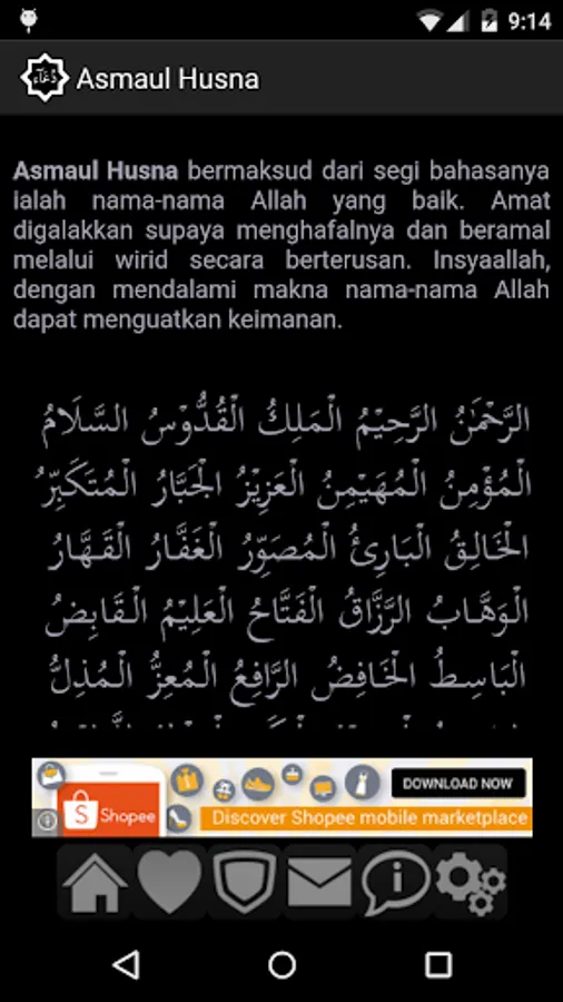 Aplikasi ini mengandungi koleksi doa dan zikir. Turut dimuatkan bacaan ayat-ayat Ruqyah sebagai pendinding kepada gangguan makhluk halus. Diharap dengan adanya aplikasi ini, dapat membantu pengguna dari segi amalan dan hafalan.
