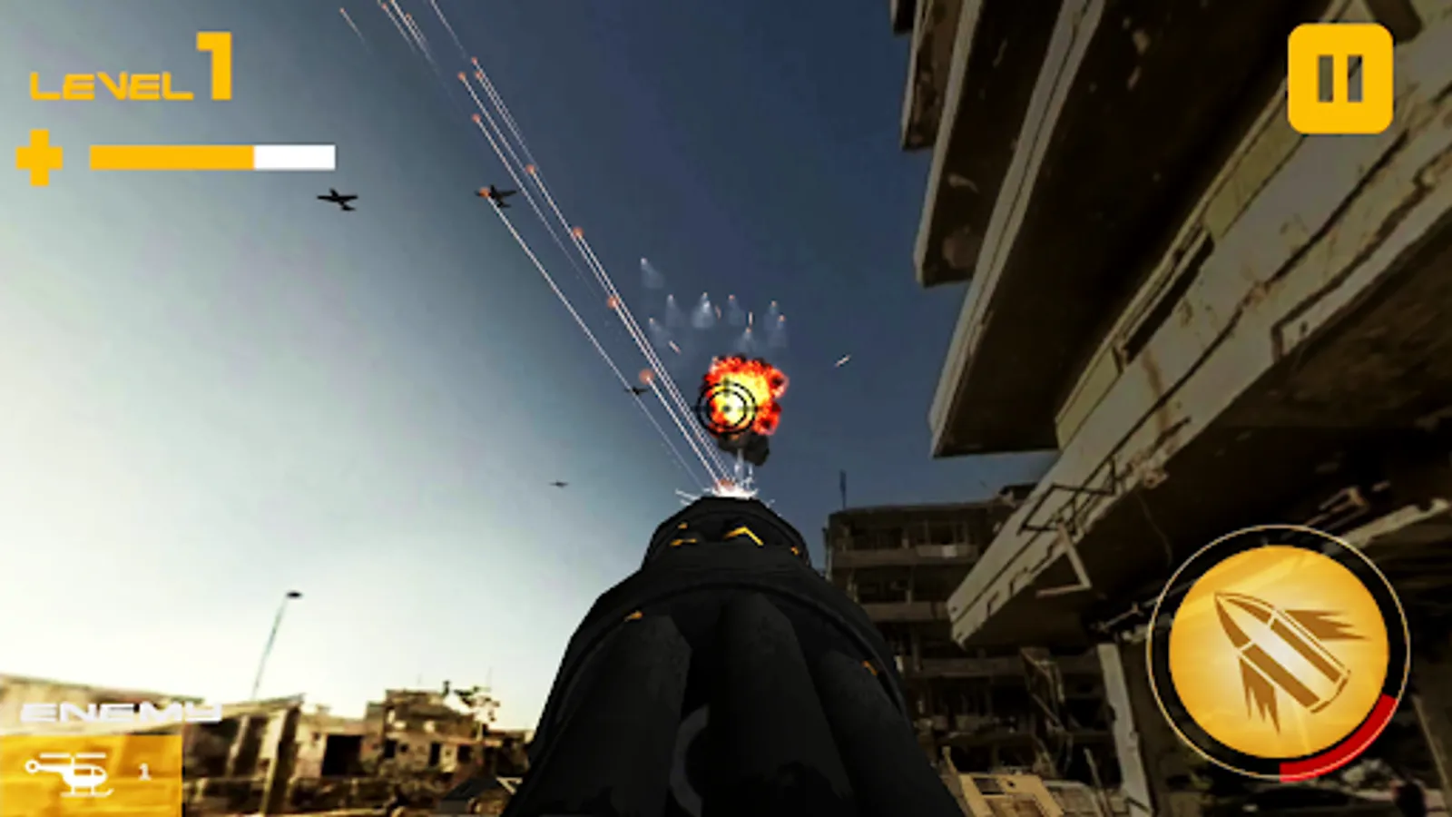 Aero 360 shooting game is ready to slay hordes of critical terrorists from Terrorist camps! Enjoy air strike games offline missions by this full action packed shooting game. Play air attack 3D sky war game in VR mode by using VR Box. Enjoy VR gaming experience in our gun shooting game offline. Air Attack 3D is full of action packed fearless gun firing game attacks and also filled with many Defense missiles attacks. An air attacks shooting game full of action and adventure that you can play in VR game mode with the help of VR box. You will never be a part of VR action game except for the most challenging adrenaline of jet fighter air strike 3d tank war game. Helicopter shooting game experience is now in everyone's hands in VR game mode but the choice is yours. Aero 360 tank war game is an offline game to play. Our gun banduk game will be updated with new game feature which you have seen as soon as possible.