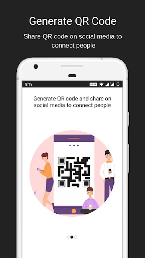 * Generate and Share your QR code on your social media accounts OR Scan the QR code of the person you want to chat with.