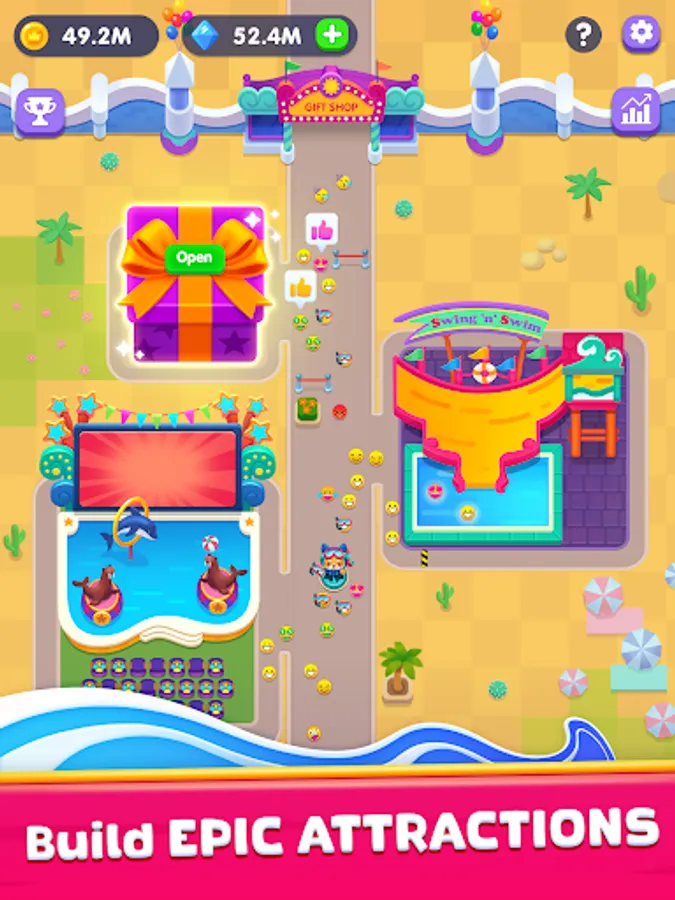 One of the most exciting aspects of the game is the ability to customize the park with different mascots and themes. Players can choose from a variety of characters, including beaver, tiger, and even penguin, to add a unique touch to their park. Create a unique and memorable experience for visitors!