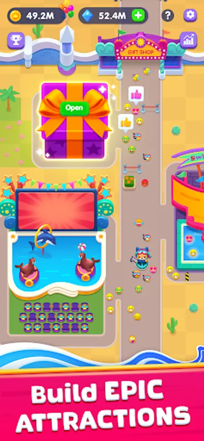 UPGRADE ATTRACTIONS - make your park the biggest and funnies one.