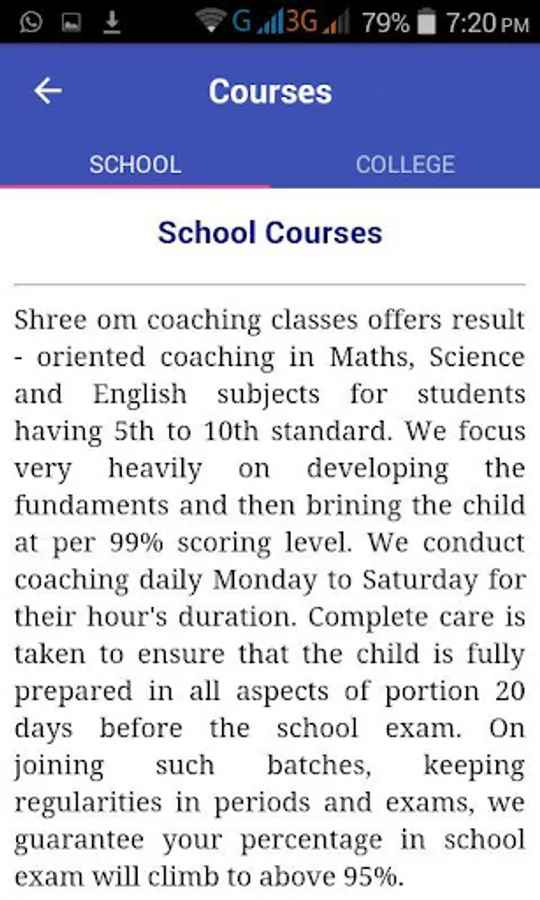 Om coaching classes is one of the best educational institute in maharashtra. This application provides all information about the institue . This app is very useful for class teachers, students and their parents.