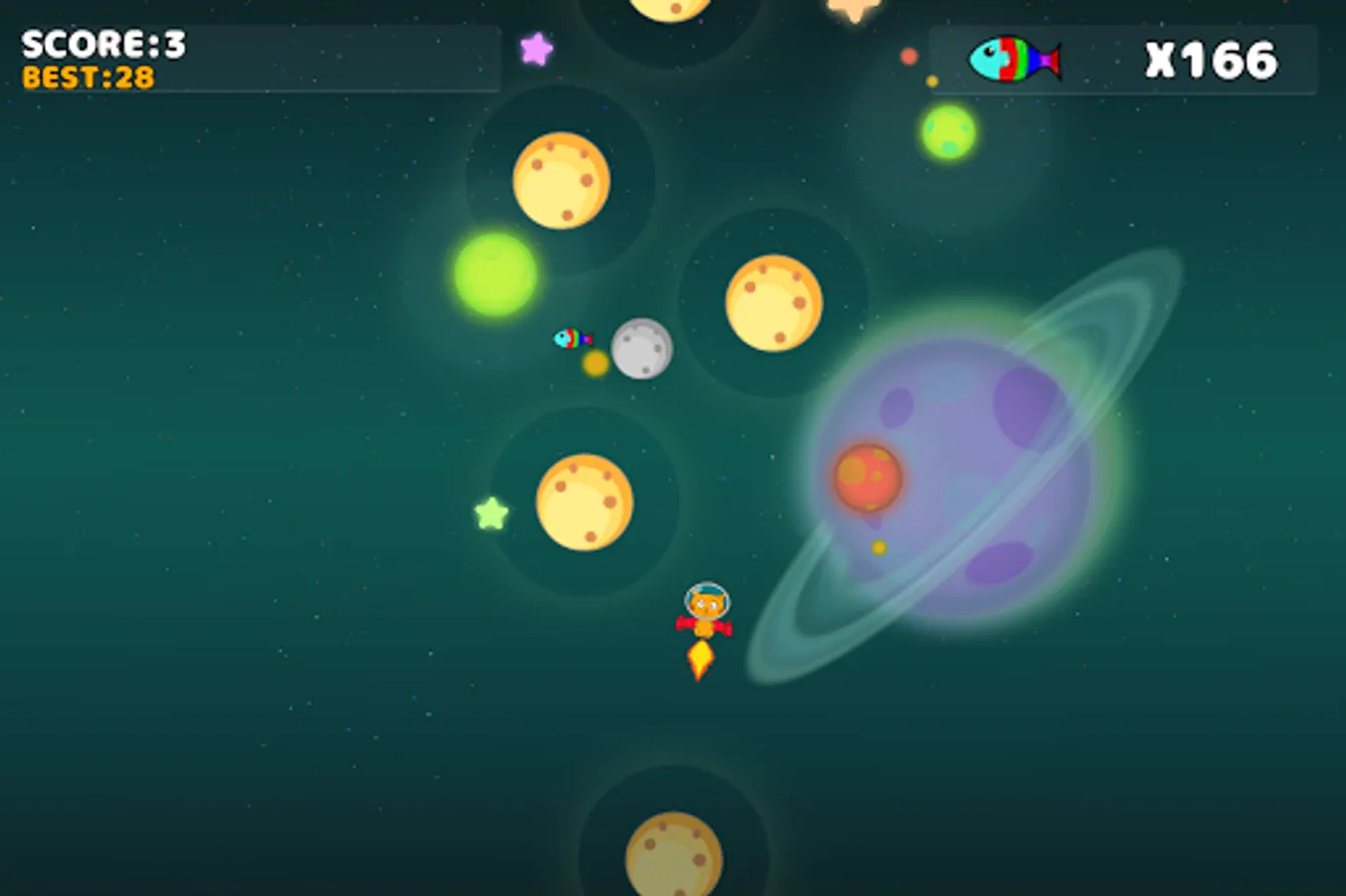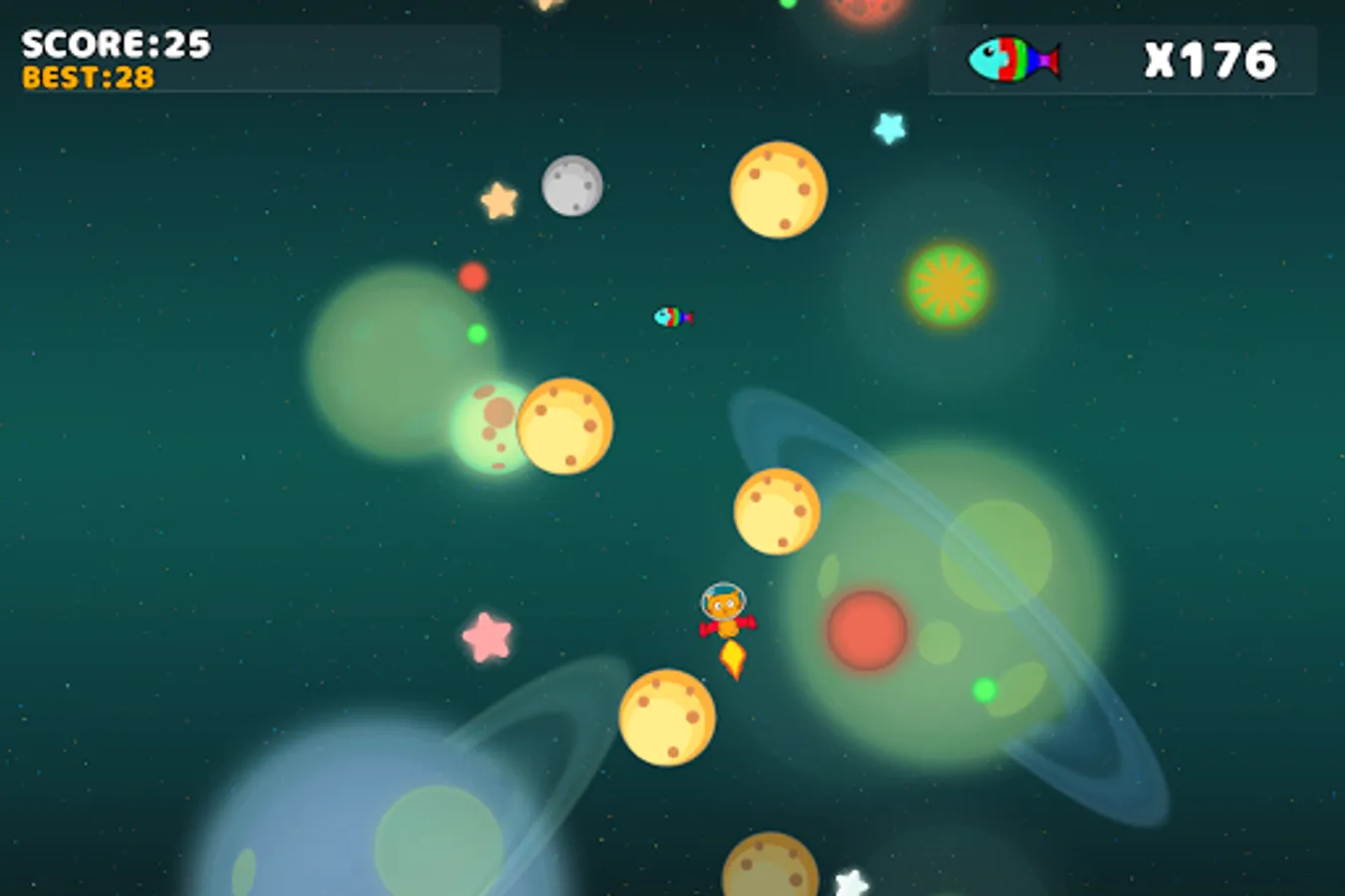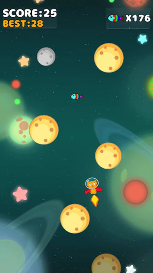 This game is about a cat that is flying in the space, you must help him to land in the next planet, be careful out cat cannot land in the smallest planets that will make end the game.