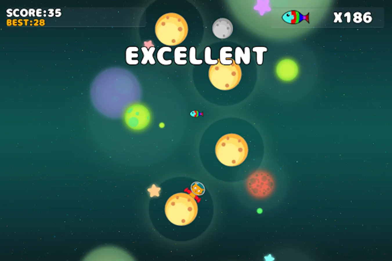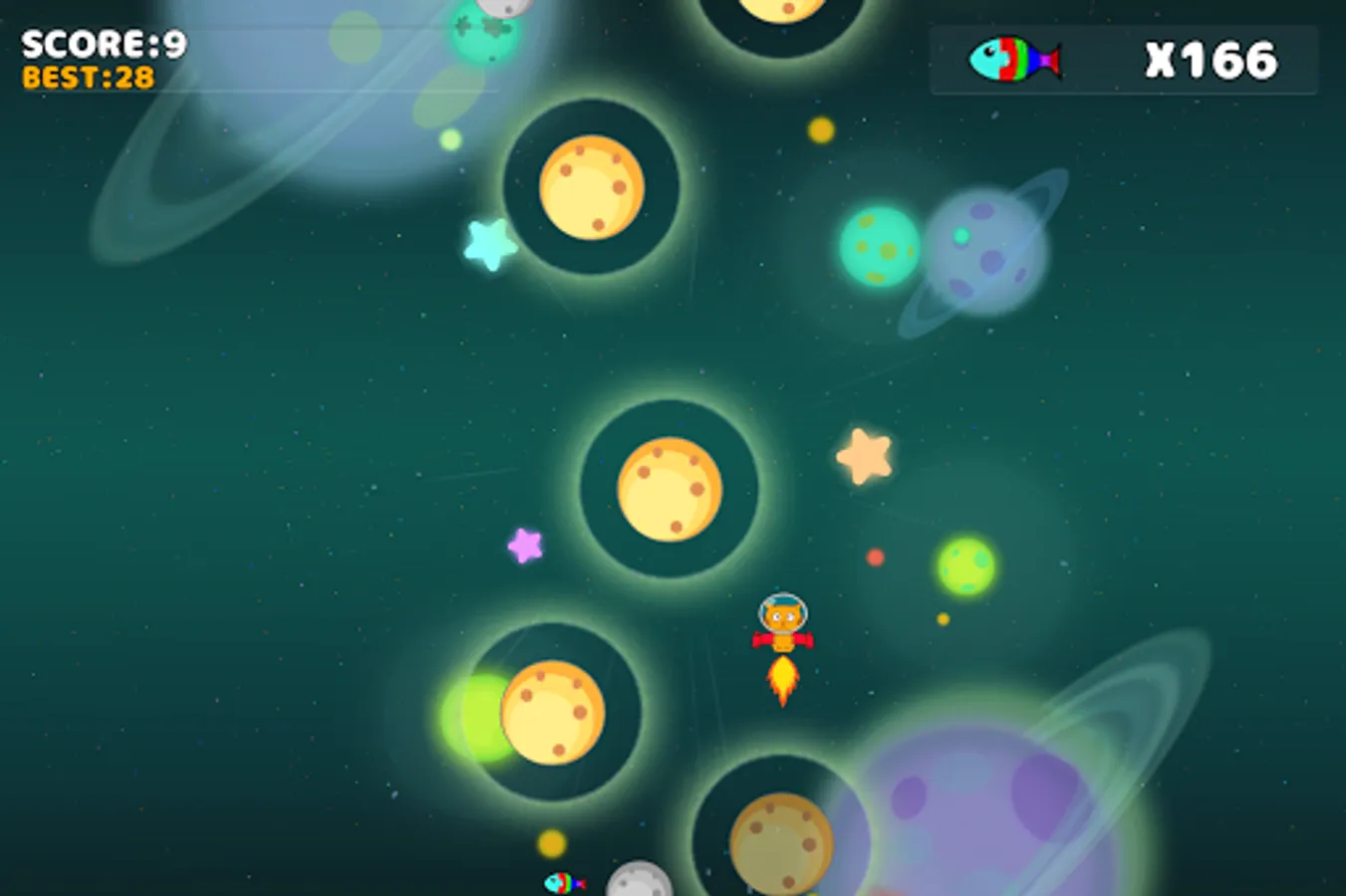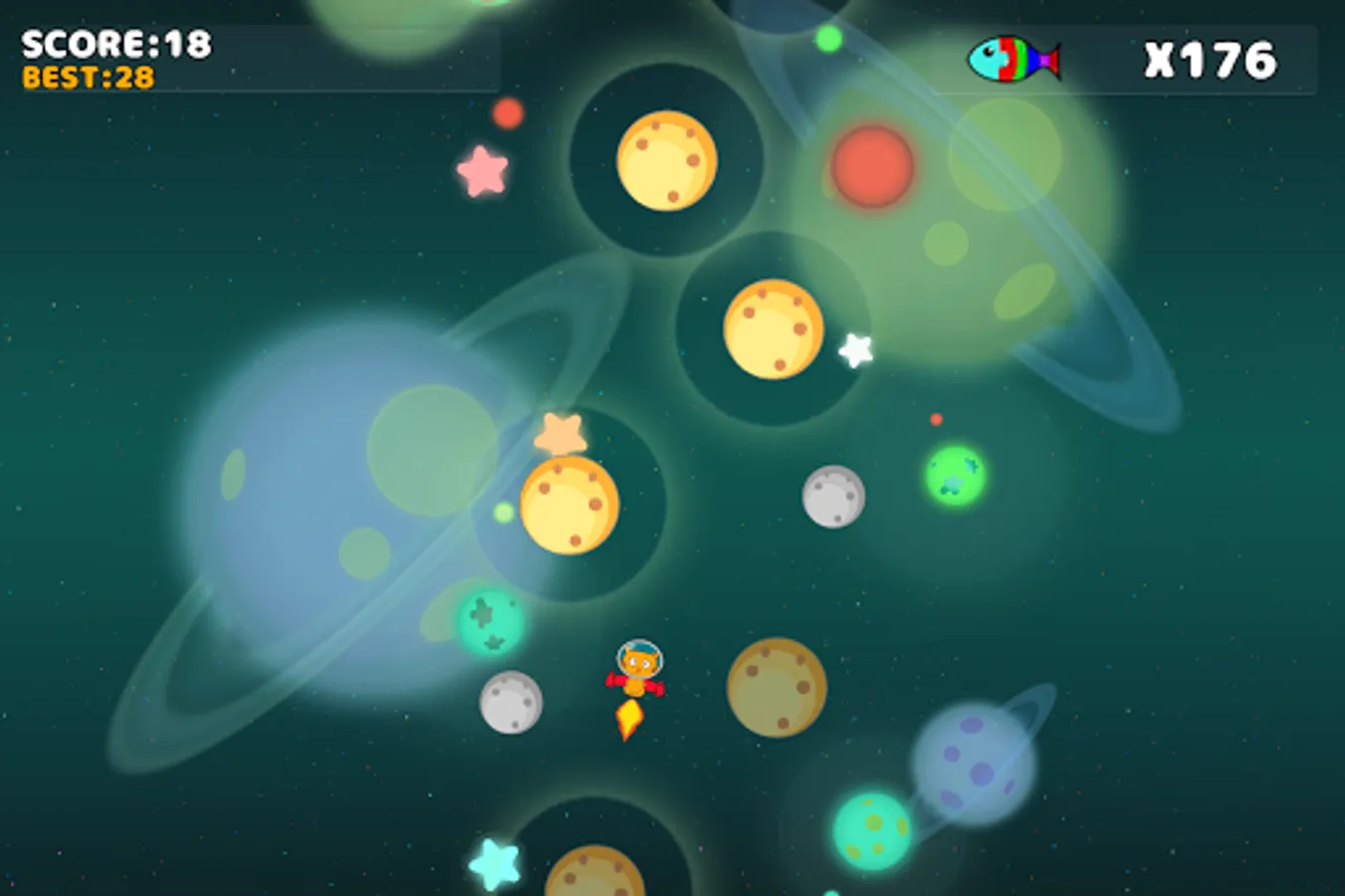 This game is about a cat that is flying in the space, you must help him to land in the next planet, be careful out cat cannot land in the smallest planets that will make end the game.