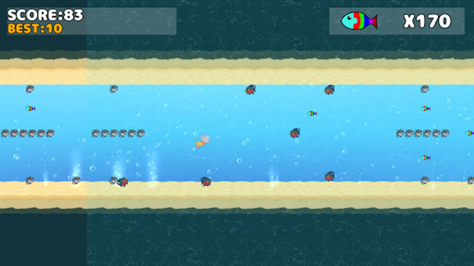 -Tap the screen to swim the cat in the water