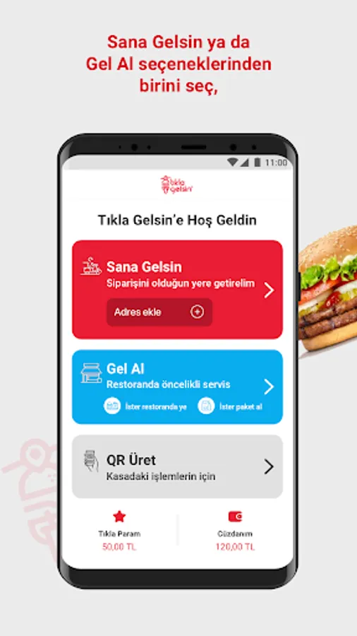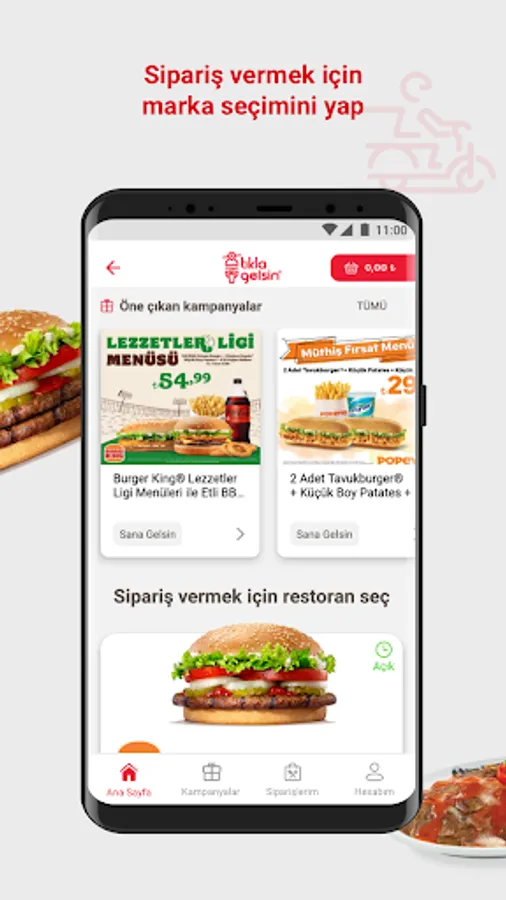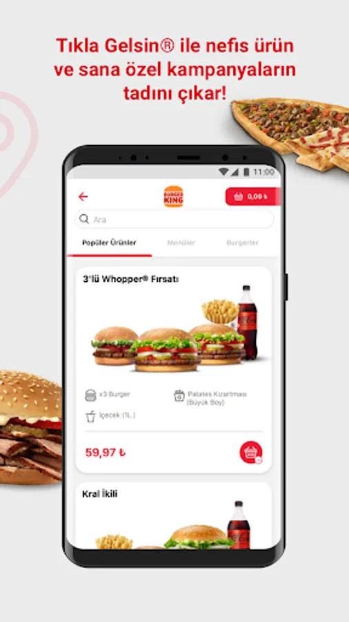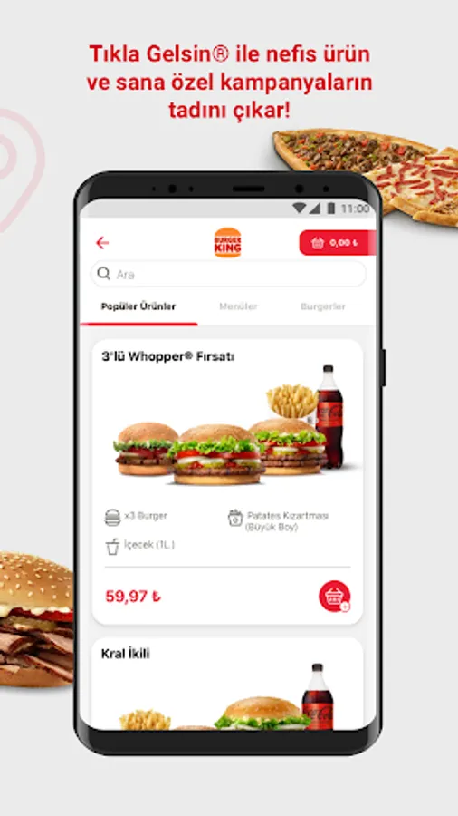 Click Gelsin® online food ordering app downloads, Turkey's best-loved flavors come to the door of the quick service restaurant you want! The irresistible flavors of Burger King®, Popeyes®, Arby’s®, Usta Dönerci®, Sbarro®, Usta Pideci® and Amasya Et Products® are waiting for you at Click and Come® with advantageous prices and attractive campaigns.