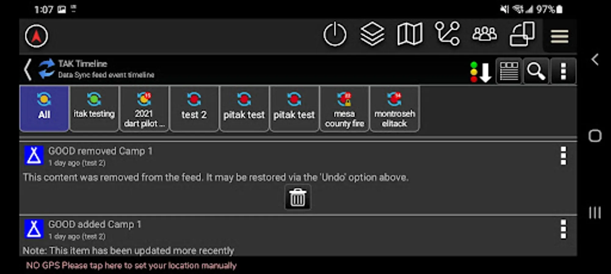 • Map Items (CoT data) - including markers, shapes, routes, etc.