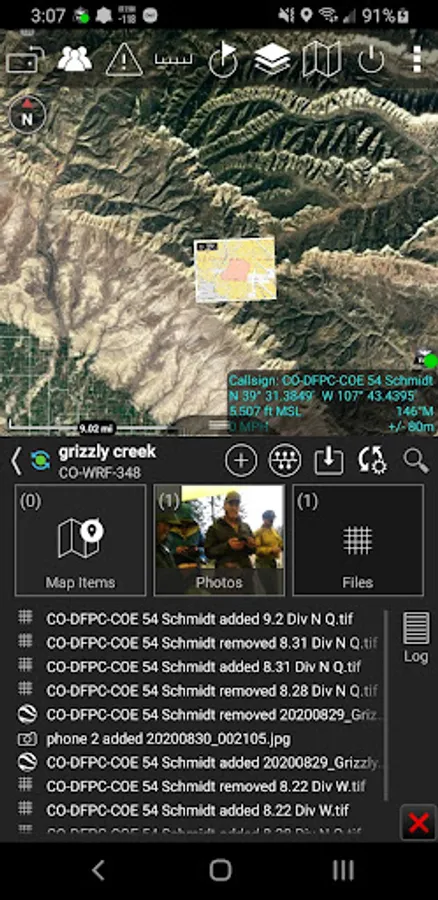 • Logs - Mission or Recce logs are timestamped events associated with the mission