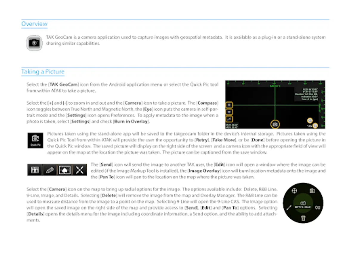 Many of the preferences within Tak GeoCam depend on the matching ATAK preference such as Coordinate Display, Altitude Display, Altitude Units, North Reference, etc.