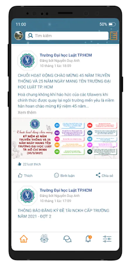 ULAW HCMC is a platform developed on Mobile App with two languages Vietnamese and English to help manage connection and communication activities of the student and alumni community at Ho Chi Minh City University of Law.