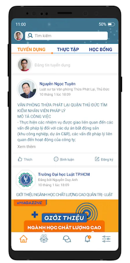 ULAW HCMC is an application to help the University of Law connect its students with alumni, creating a communication channel between the university and its students. From this platform, students can receive instant updates from the school and easily access internship, scholarship, and job opportunities from alumni.