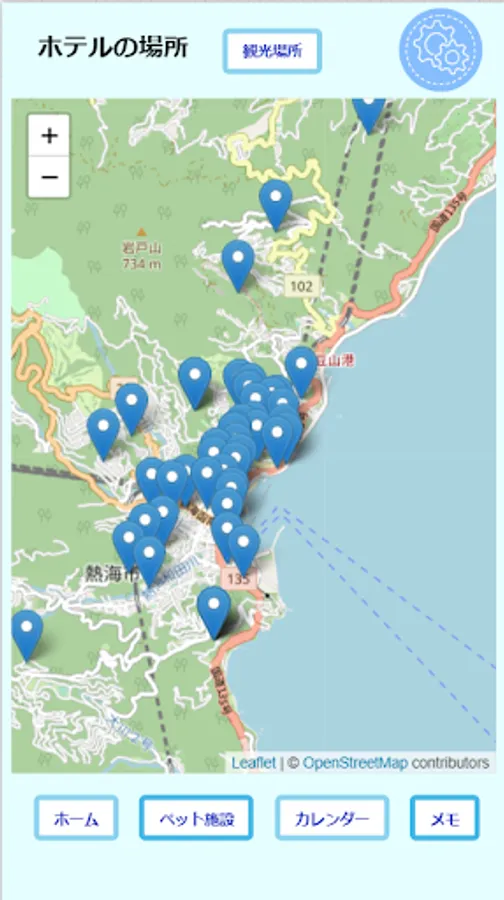 ○ Check the locations of sightseeing spots, hotels, and pet facilities in Atami on a map