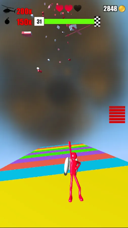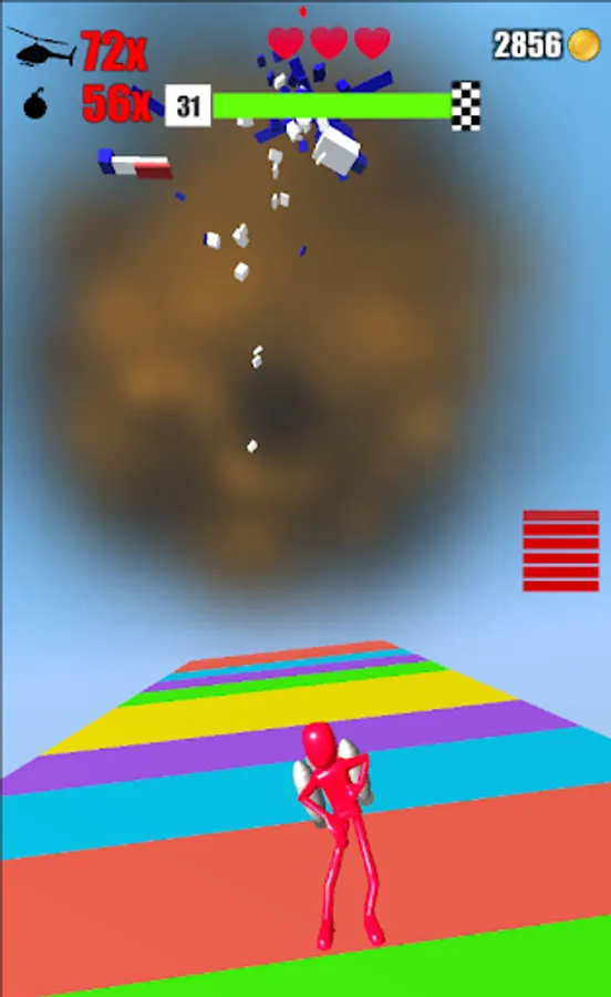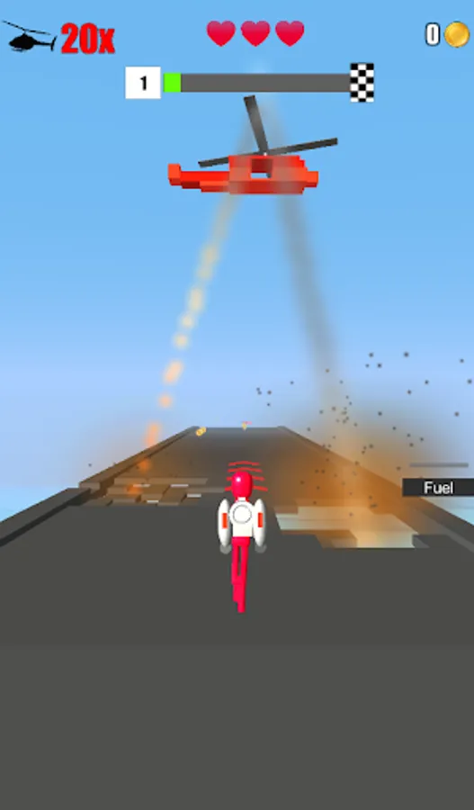 In an environment that is bombarded by a Chopper, collect as much fuel as you can, to fly high and take down the chopper and reduce it into tiny pieces.