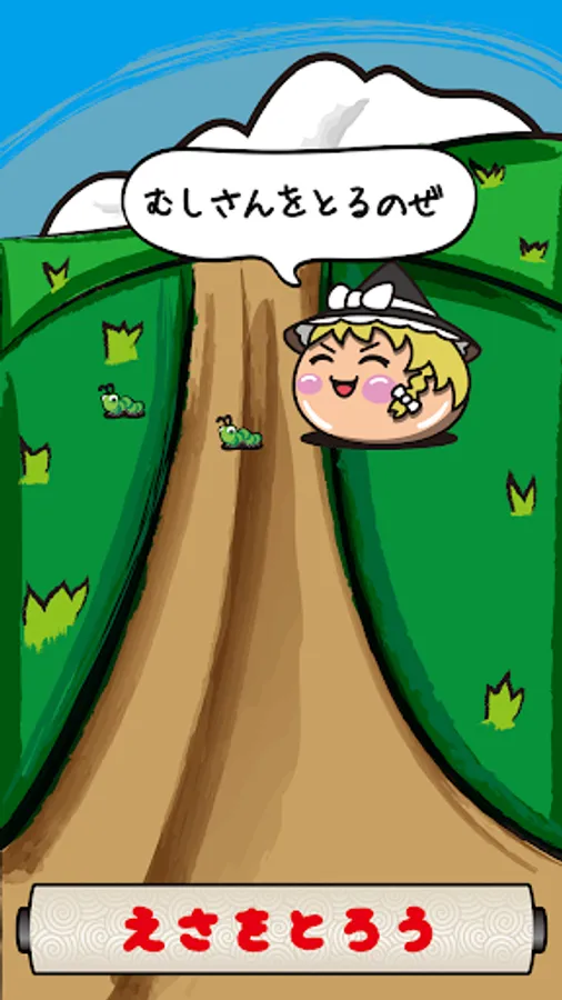 「えさとり」の画面でスワイプして虫を捕まえましょう。