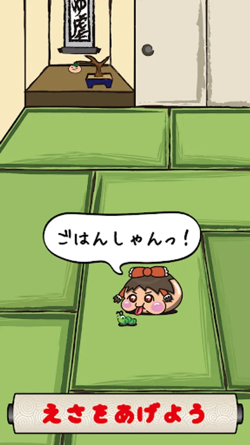 「えさ」ボタンをタップしてゆっくりにえさをあげましょう。
