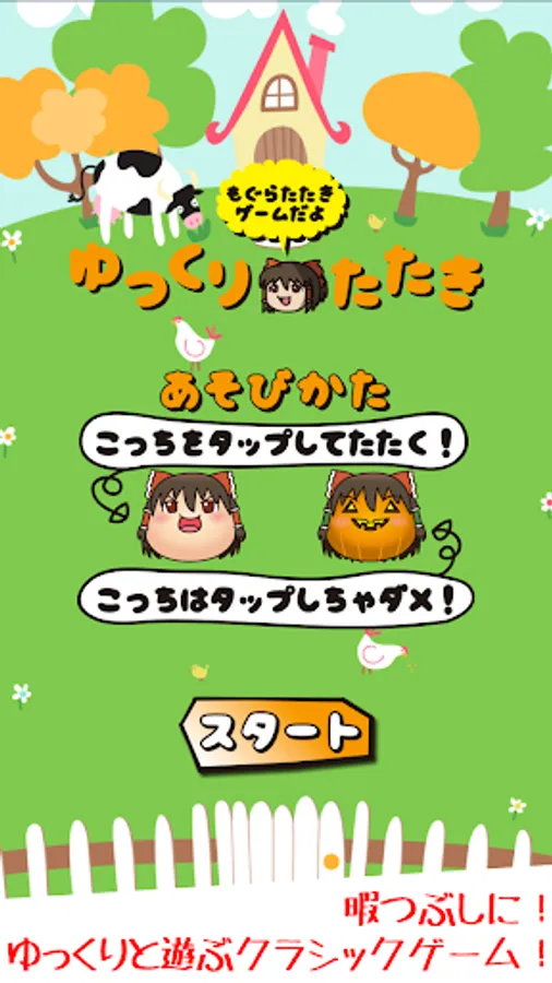 穴から出てくるゆっくりをタップで叩くと得点ゲット。