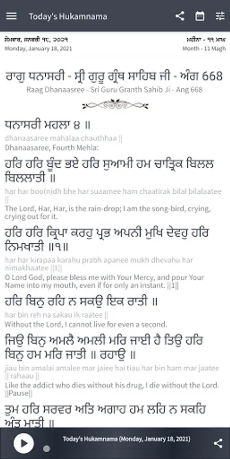Mukhvak is a unique, easy to use Mobile Application (iOS, Android) that provides a Daily Hukamnama service with instant access to Guru’s Royal Decree from Sri Harmandir Sahib Jee, Amritsar. Mukhvak offers multiple distinctive features such as the audio of the Daily Hukamnama from Sri Harmandir Sahib Jee, the Katha of the Daily Hukamnama from Manji Sahib Jee as well as the monthly Sangrand Hukamnama. Mukhvak provides the ability to Sangats worldwide to easily access GurooSaaaheb’s Royal Decree and the option to read and understand it in multiple languages.