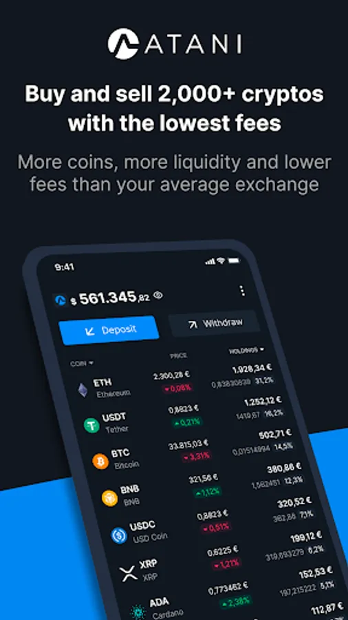 Trusted by over 300,000+ traders around the globe since 2019, Atani is a European-based and regulated company that enables you to securely buy and sell Bitcoin, Ethereum and thousands of other promosing altcoins at the best price and with the lowest trading fees. In short: