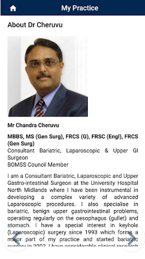 This app introduces patients to the practice of Mr Chandra Cheruvu, Consultant Bariatric, Laparoscopic and Upper Gastro-intestinal Surgeon at the University Hospital North Midlands.