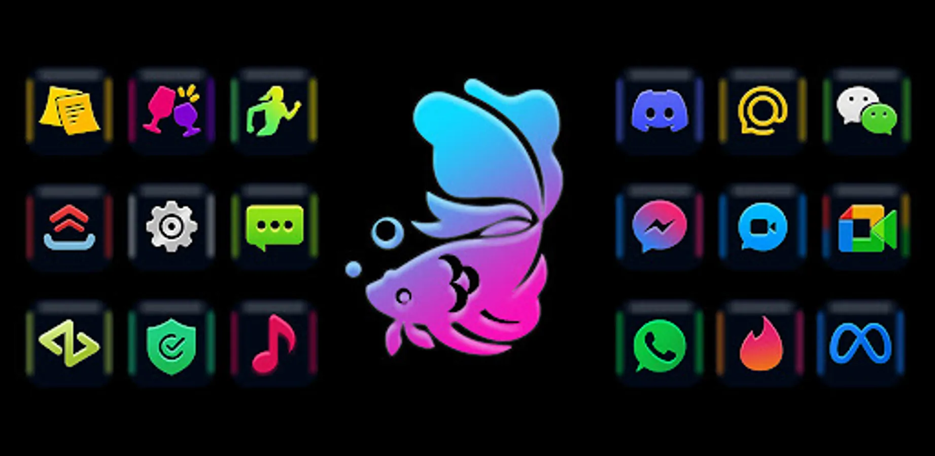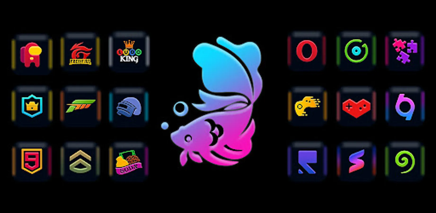 2500+ Rounded corner square black icon base with most attractive fluorescent icon graphics that's makes device's icons more beautiful and unique