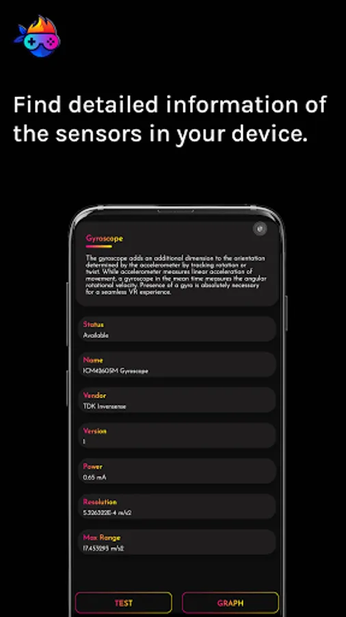 This app has been developed to tell you if your device has a Gyro sensor. This app also lets you control the Gyroscope sensor's sensitivity to suit your gaming needs.