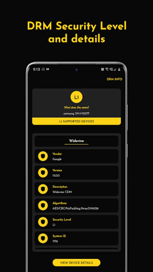 This app shows you the security certification level of your device. The security level also decides the streaming quality supported by a streaming app such as Netflix, Amazon Prime and Youtube.
