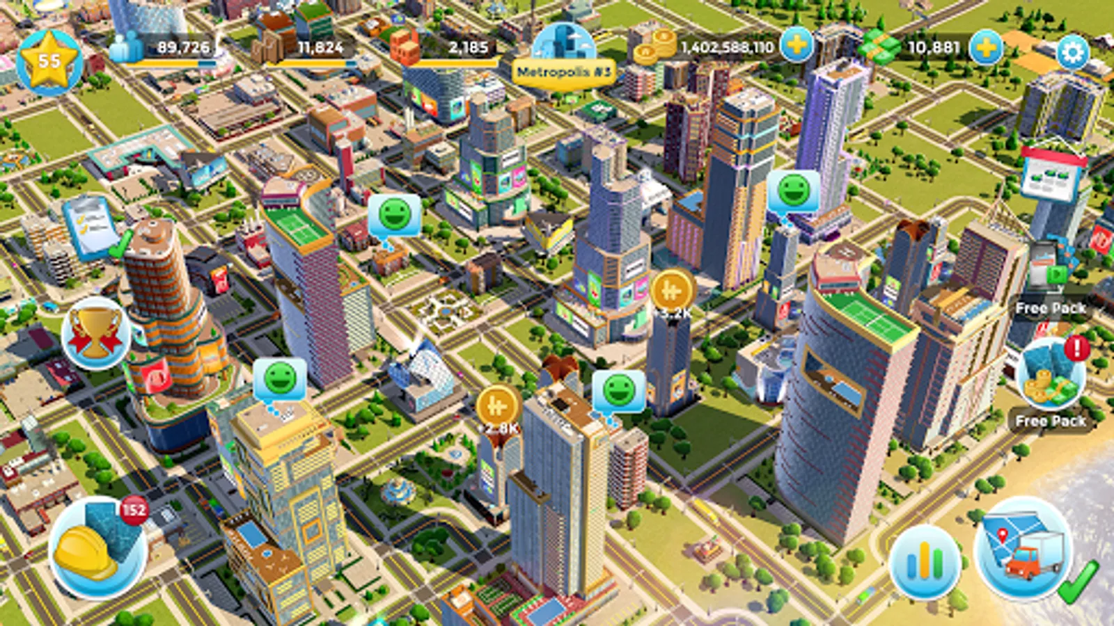 Collect a WIDE COLLECTION of Cards: Open free packs every day to find new buildings, decorations, vehicles and more. Find cards to unlock new creations and upgrade them to boost existing infrastructure. Discover rare and epic cards with outstanding stats like towering skyscrapers and stunning attractions.