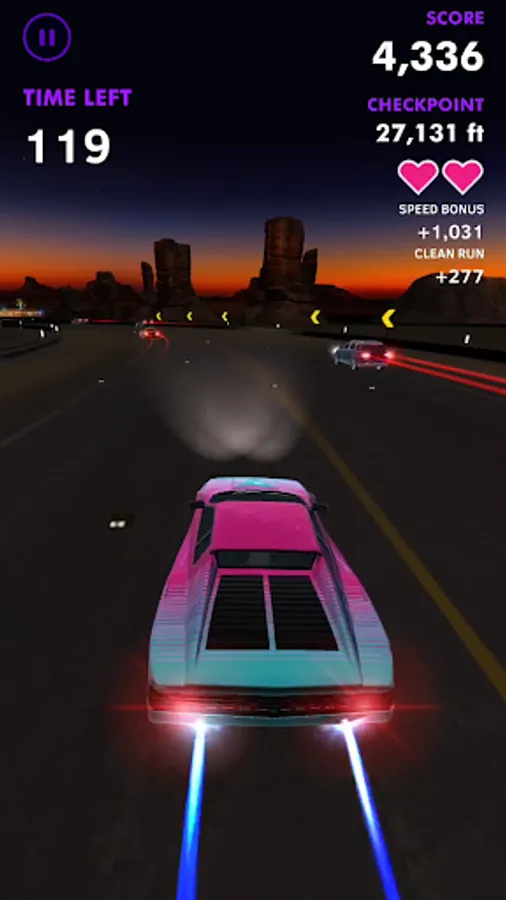 Own the road in Night Driver™, a fast-paced, single-handed endless driver set under the dark sky. Based on the classic, groundbreaking Atari® hit of the same name that started the racing genre, Night Driver is the exhilarating, re-imagined update. Unleash nitrous boosts to go full throttle through exotic locations at night from city freeways to coastal resorts as you navigate through traffic and other obstacles on ever-changing roadways. Upgrade and enhance your car’s performance, look and style by covering the most distance and collecting fast-pass tokens and crates. Choose from a range of slick and powerful vehicles to dominate the illuminated roadway and tune-up and view your collection of cool roadsters in 360 degrees in the garage before taking them out on the road across three different game modes.