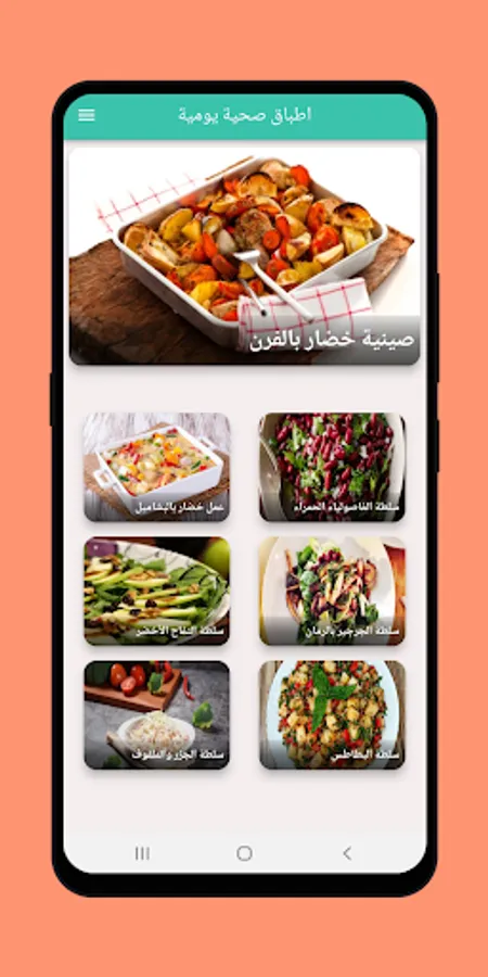The application of daily healthy dishes, which is an application of healthy food recipes and contains easy and quick recipes and recipes for healthy eating that is easy to prepare, a variety of foods for dieting and slimming, a variety of food and food from many daily items that must be present within the daily diet of the individual, salads, dishes and main meals And salads for dieting, healthy and beneficial food for the mind, body, and human health, and quick recipes for cooking, food suitable for all groups to lose weight and maintain fitness and health for the body, and suitable for heart and diabetes patients, delicious and delicious food and easy-to-prepare food.
