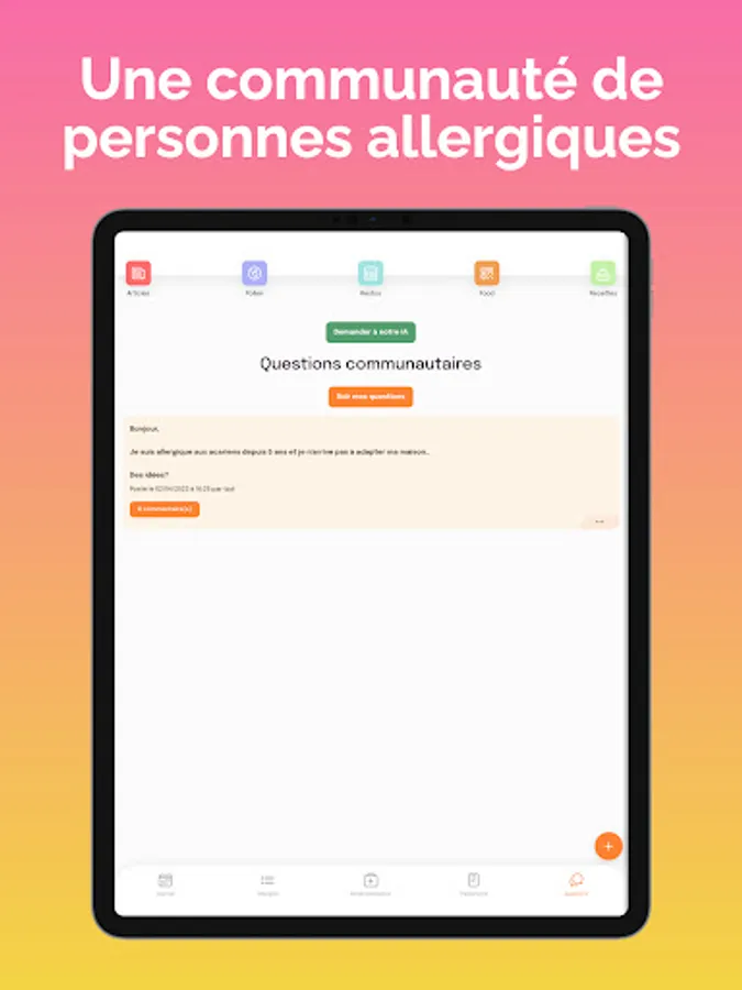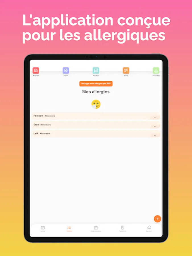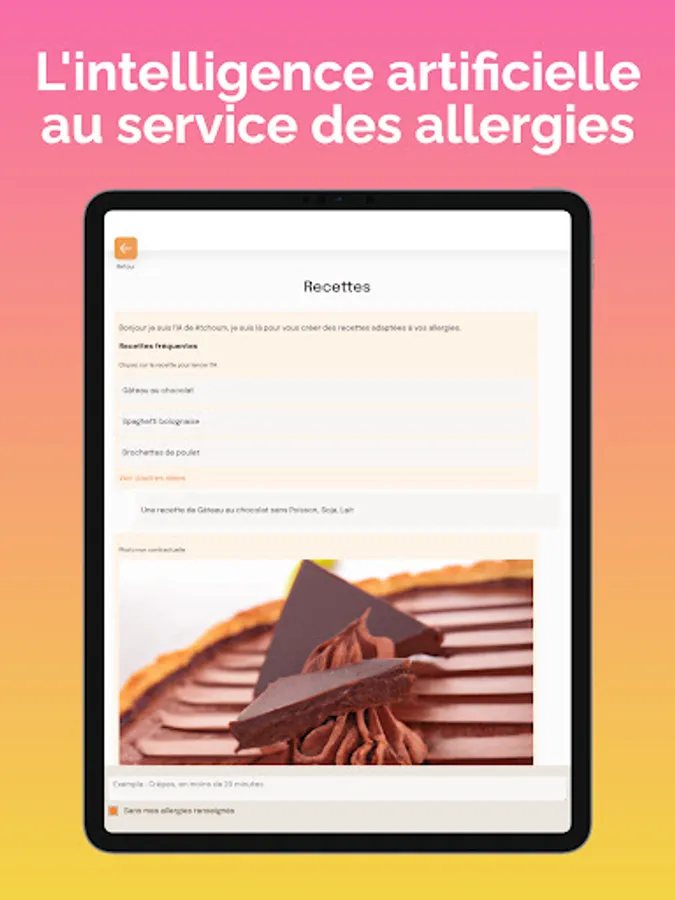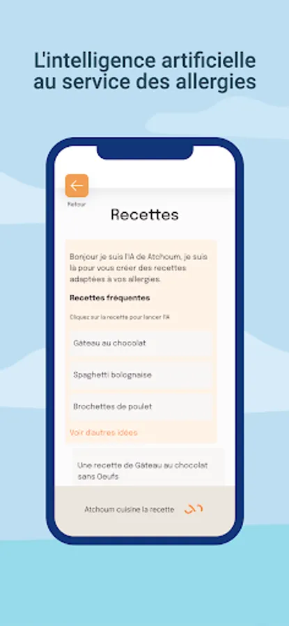 Thanks to AI, Atchoum offers allergen-free recipes to help users diversify their diet. Allergies can also be shared for easy communication with friends and family.