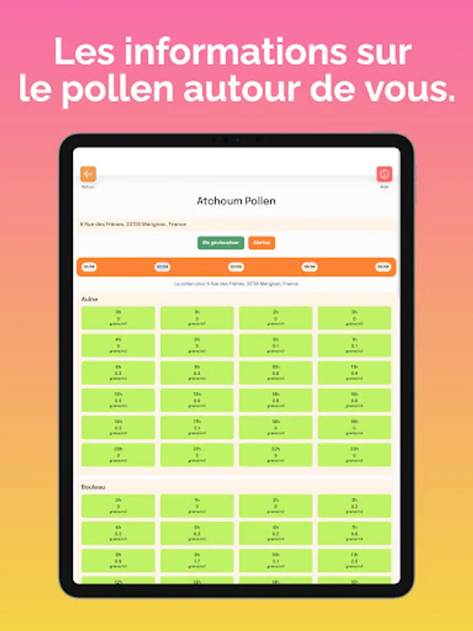 Atchoum also offers an interactive map that locates pollen zones, as well as pollen alerts to help users anticipate periods of high exposure.