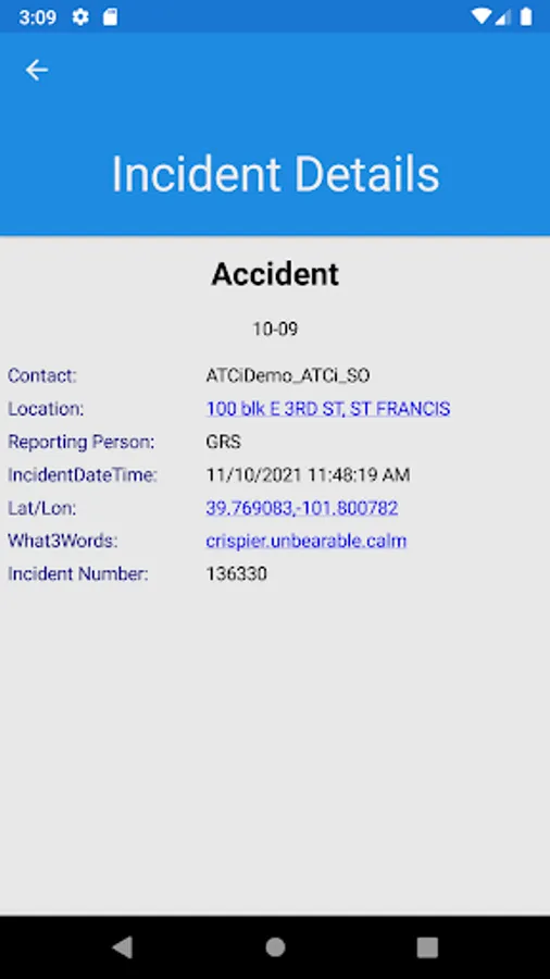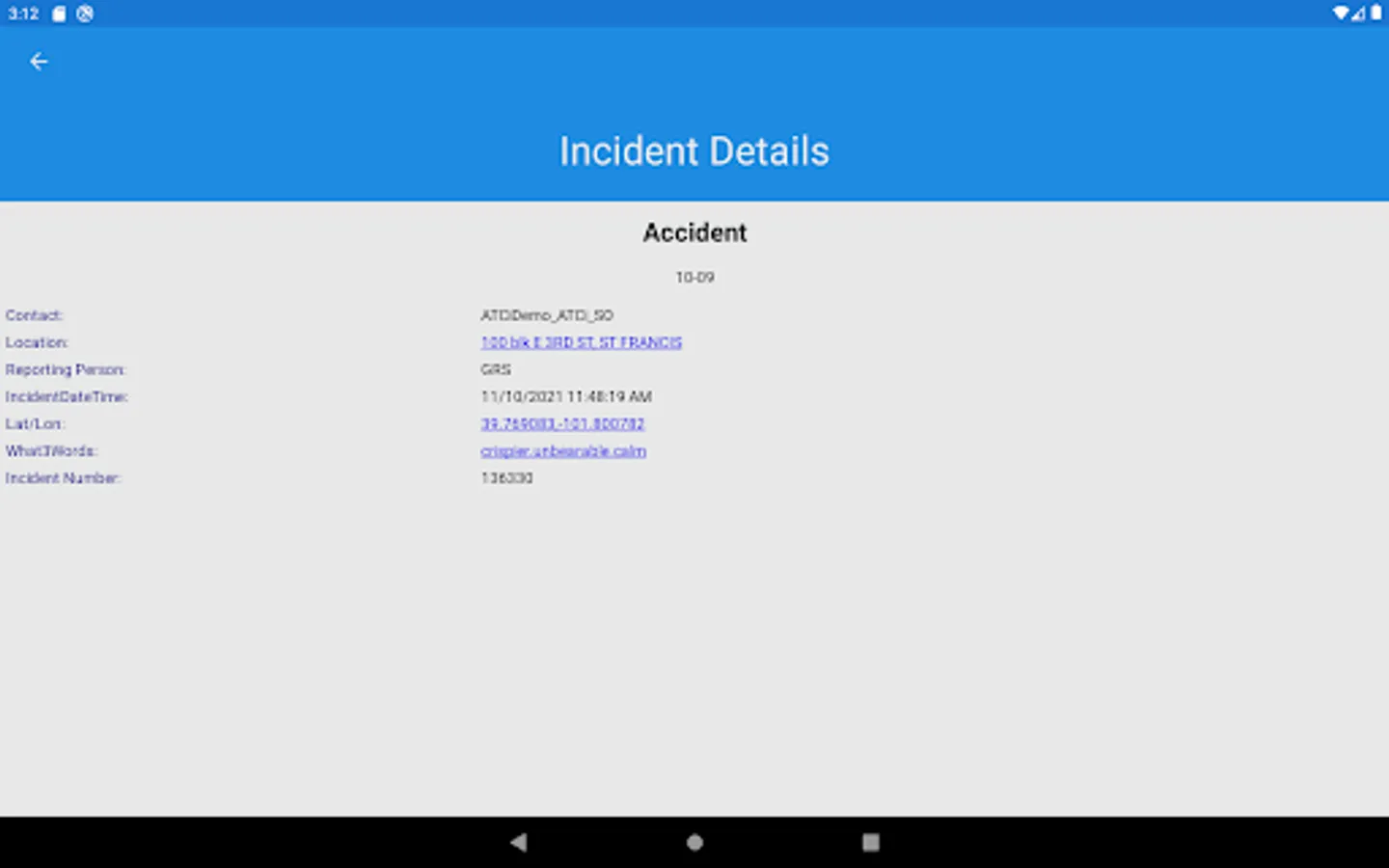 The First Responder can also review a list of prior incidences and optionally drill down to full information about the incident.