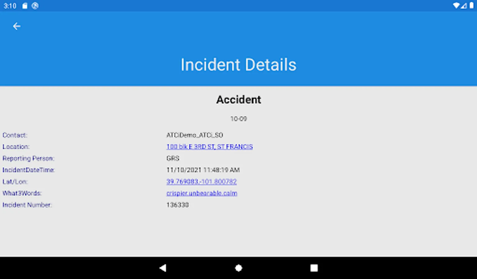 This notice is delivered as a "push message" and provides linking to various maps to help identify where the incident occurred.