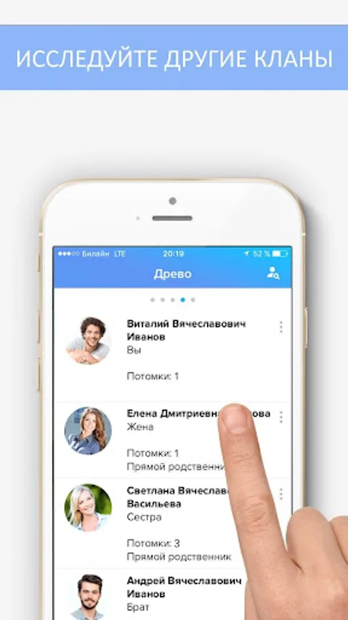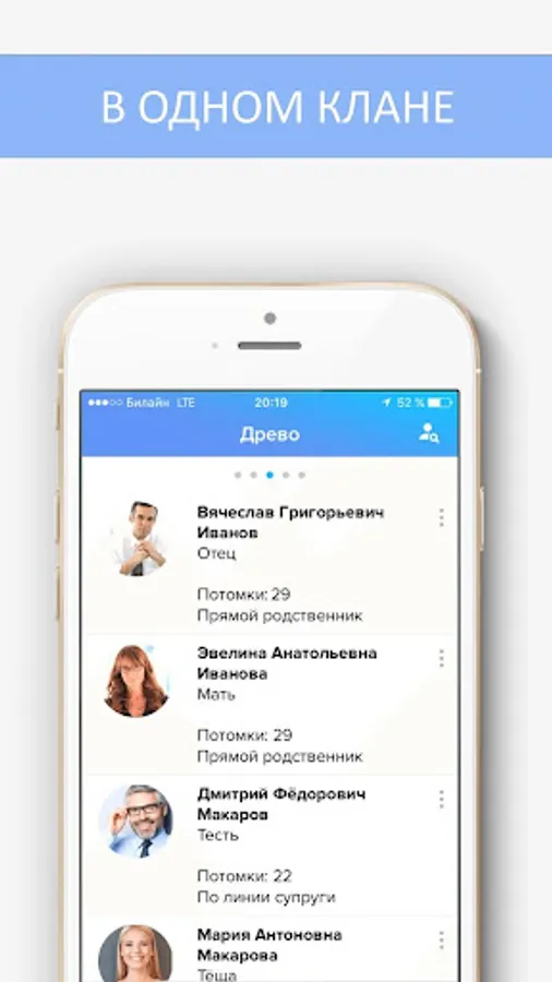 To do this, you do not need to fill out huge and inconvenient forms. It is enough to enter your data and the data of your parents, and you will already find yourself in your Clan, where you can communicate with relatives and explore the entire pedigree or visit another Clan through relatives.