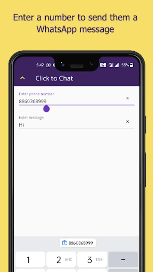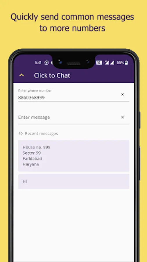 ✓ Direct send SMS to any numbers that are not saved in your contact list.