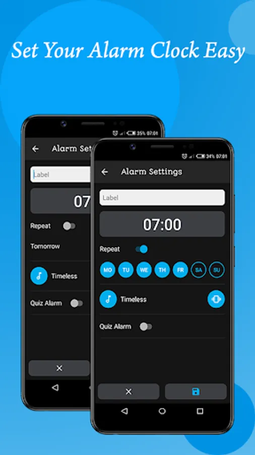 > Set multiple alarm options (e.g. simple alarm clock ⏰ or quiz alarm clock 💯 ), and choose the one that you want each night before going to sleep.