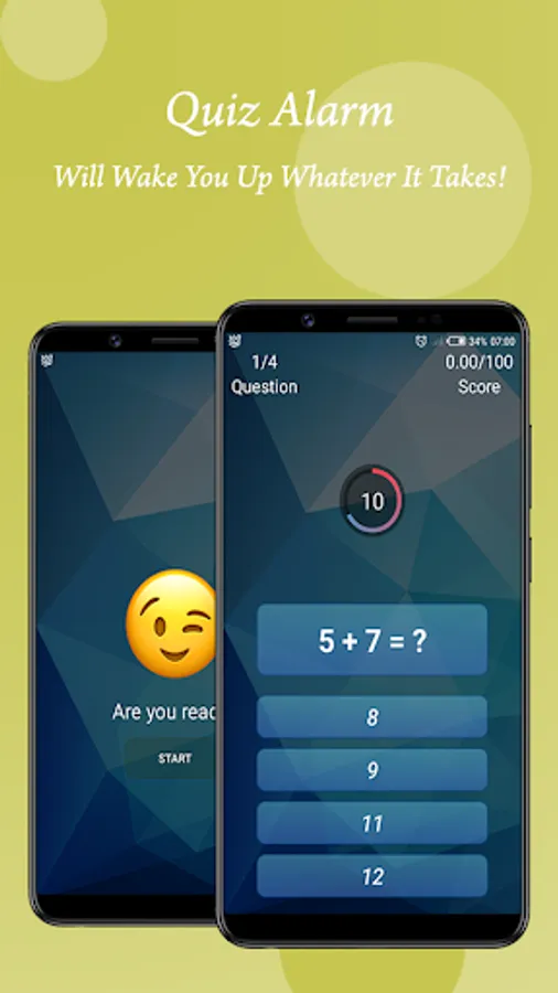 Unlike conventional alarm clocks and alarm apps, Fun Alarm Clock forces you to solve multiple-choice math puzzles before shutting off its alarm. You'll never worry again about unconsciously pressing your alarm clock's “snooze” or “stop” button and oversleeping!