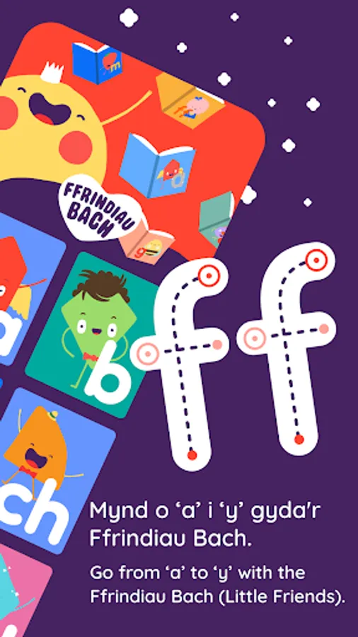 Ap unigryw dysgu’r wyddor Gymraeg llawn lliw a hwyl sy’n addas ar gyfer dysgwyr ifanc 3 i 5 oed. Mae’n targedu sgiliau dysgu llythrennau ac yn helpu i ddatblygu’r cof gweledol a chlywedol ac ehangu geirfa. Mae tair haen i’r ap sy’n cynnwys dysgu trwy stori, copïo a chwarae gemau.