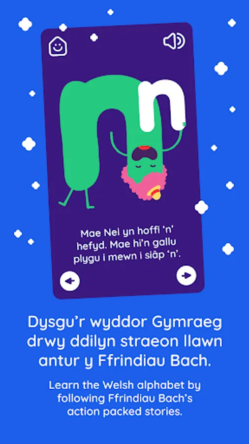A unique Welsh alphabet learning app full of colour and fun that’s suitable for young learners aged 3 to 5. It targets letter learning skills and the development of visual and auditory memory and vocabulary expansion. The app has three layers including learning through story, tracing and playing games.