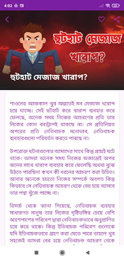 শাওনের আজকাল খুব অল্পতেই মন মেজাজ খারাপ হয়ে যাচ্ছে। সেই হুটহাট করে খারাপ ব্যবহার করে ফেলছে, অনেক সময় নিজের আচরণের প্রতি তার নিজের কোন কন্ট্রোলই থাকছে না। সে প্রতিনিয়ত অপরের প্রতি নেতিবাচক মনোভাব, নেতিবাচক ব্যবহারগুলো পরিবর্তন করতে পারছে না।