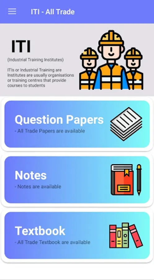 This application is for all the students. It contain all trade course of ITI Easy to use, Just open download and read.