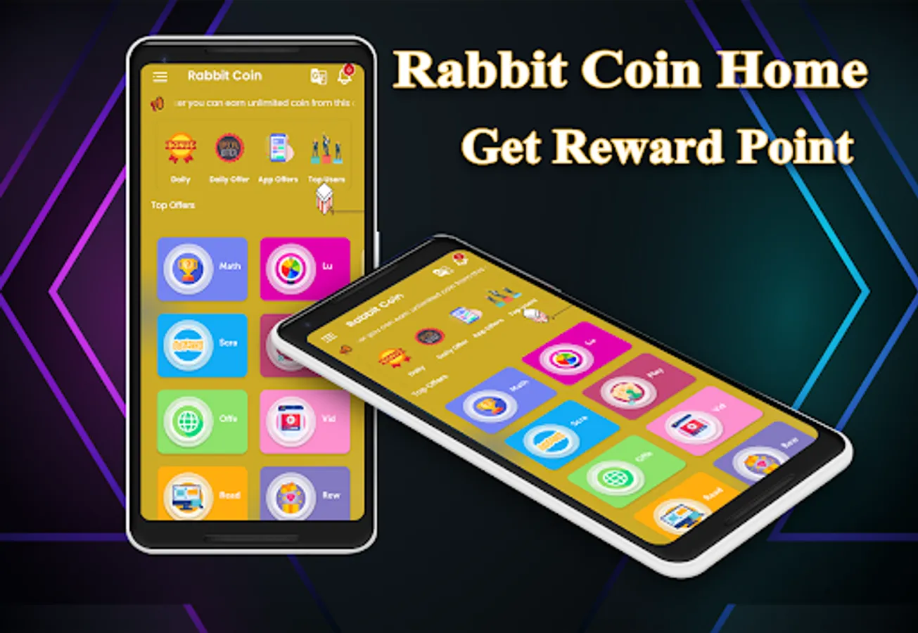 Rabbit Coin App Offers is a best app for user who want to earn cash. there many option for earn cash user can earn cash via download app + invite friend also earn with watch video earn simple app beautiful interface.
