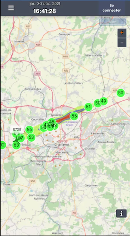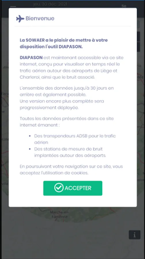 DIAPASON is now accessible via this application, designed to visualize in real time the air traffic around the airports of Liège and Charleroi, as well as the associated noise.