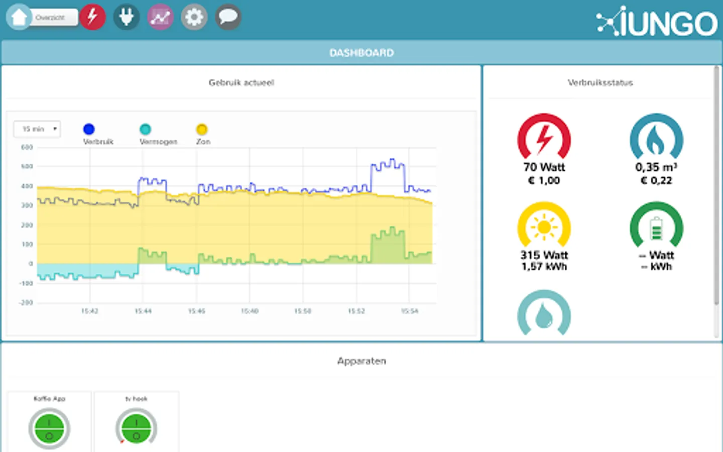 Get to know Iungo. A super smart energy controller in the meter cupboard that helps you save on your energy and gas consumption. It provides clear insight into consumption and thanks to the intermediate plugs it automatically helps you save on your energy bill. You have access to all data via computer, smartphone and tablet and you can operate and automate all connected devices.