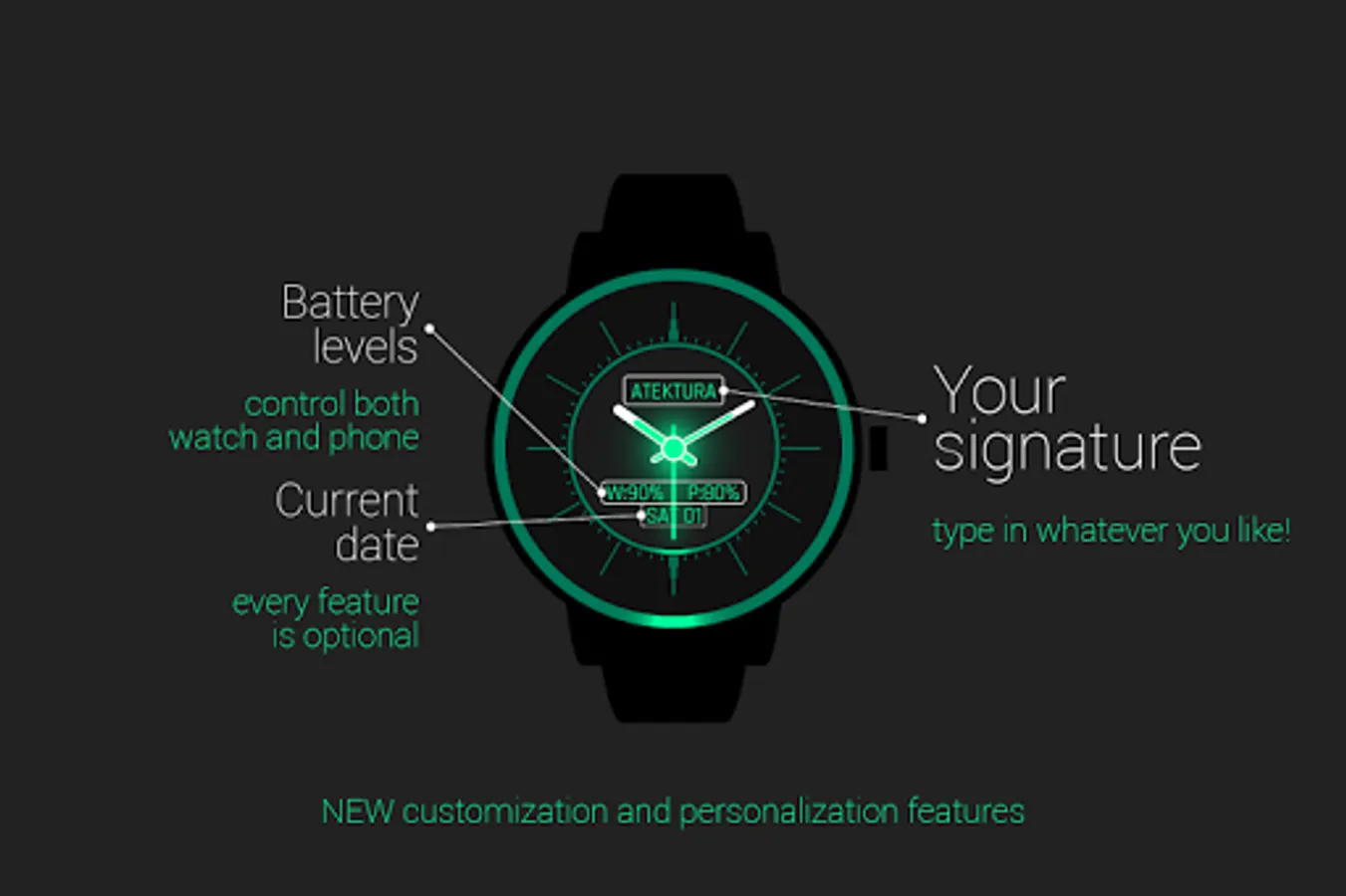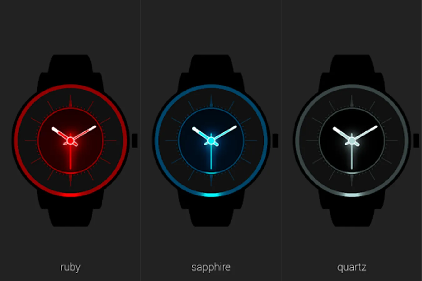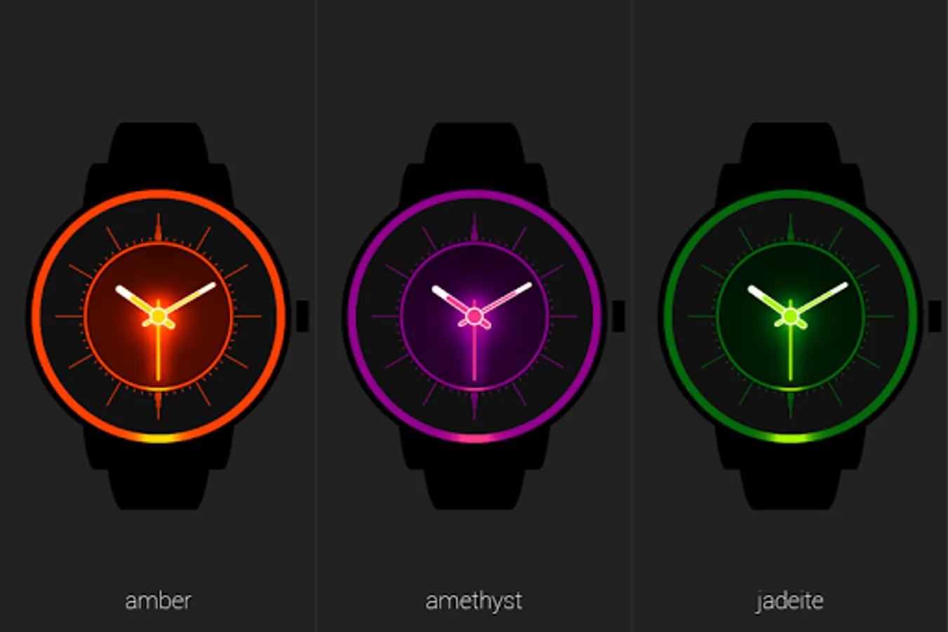 Analog watch face with a beautiful illumination and 9 unique color skins: